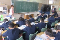 年度初めの授業参観を実施しました。1年生は、ひらがなの「あいうえお」の書き取りに取り組んでいました。6年生では、国語で「二十四節気」を学び、「春」を感じること、物について200字の作文を書いていました。知識を生かし活用する力を伸ばしていくことが大切ですね。