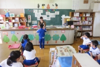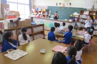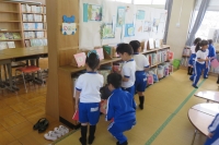 今日は、1年生への指導です。幼稚園や保育所と小学校の違いが図書室でも発見できるかもしれませんね。