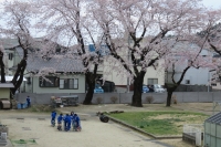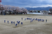 校庭の桜が風に揺れ、満開を迎えています。子どもたちも休み時間、元気に鬼ごっこや一輪車などで遊んでいます。