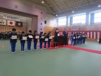 予行後の時間に、2月に全校生で挑戦した漢字検定試験の表彰を行いました。残念ながら全員合格とはなりませんでしたが、多くの児童が目標とした級に合格しました。そして、満点合格の児童が17名おりました。すばらしいなと思いました。次回に向け、また、チャレンジしていってほしいと思います。