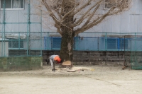 校庭南側にあった銀杏の木を伐採しました。近年、落ち葉によるご迷惑もあり、倒した次第です。銀杏の葉が色を変えていく姿は美しくもあり、ちょっと残念な気持ちになりますね。