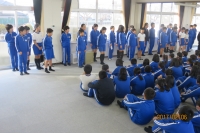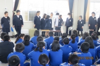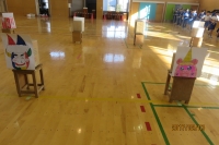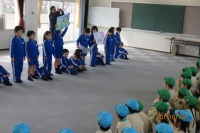 1年生が小学校に入って「できるようになったこと」などを発表しました。教室にも入り、イスに座り、大きな声で返事の練習もしました。1年生もいつも以上に張り切っていました。最後には、体育館をグルグル走ってみました。