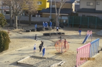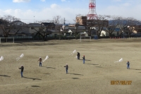 2017年2月7日 11時21分 7日(火)2校時、天気が悪くなる少し前、本校のひばり学級さんの皆さんが、たこあげにチャレンジしていました。風が西から吹いており、ほどよくたこがあがり、みんな満足そうでした。