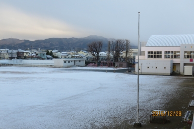 2016年12月28日 07時41分 28日(水)、朝方からの降雪で校庭も真っ白となりました。昨日から気温が上がりません。今日は、今年最後の仕事日となります。この1年、原町二小は、元気いっぱい過ごすことができました。子どもたちの元気がなによりです。