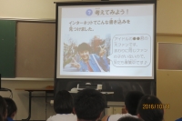ネットいじめになってしまう事例やなりすましによる誘い出し事例、立ち入り禁止場所で撮った写真をSNSに投稿した事例、勉強や食事中の使用事例など、子どもたちの中には、ドキッとした場面があったようです。子どもだけでなく、保護者にも管理する責任があります。ルール作りをしながら、段階的な使用が大切になってくると思いました。