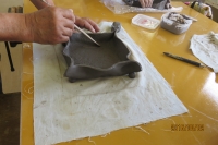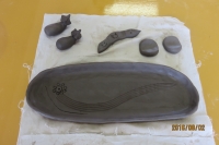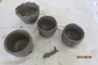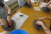 8月2日(火)南相馬市の小・中学校教員の研究会の図工・美術に所属する先生方の研修会を原町二小図工室を会場にして開きました。「陶芸」を体験しました。「ひがし陶芸教室」の皆さん6人に手ほどきを受けながら、思い思いの作品を作りました。力作、創造性のある作品ばかりでした。