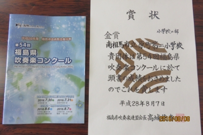 8月7日(日)、とうほう・みんなの文化センターで開催された「第54回福島県吹奏楽コンクール」において、見事、『金賞』を受賞しました。平成25年以来の金賞に部員はもちろん、家族のみなさん、指導者みんなが大喜びでした。