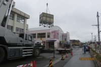 夏休みを利用して、施設の補修工事が進んでいます。今日は、高架水槽の入れ替え作業と中央玄関のタイル補修工事が始まりました。大型クレーンでこれまでお世話になった水槽を下ろしています。風が強くなる前に作業終了したいですね。