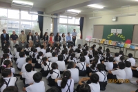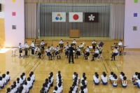 曲名「こもれびの坂」という曲で、これまでの原町二小サウンドからすると、ちょっと大人な感じのする曲かな(私見です)と感じました。中学年児童が多いので、よけいそう思うのでしょう。全校生から、励ましの言葉をもらい、大会での頑張りを期待するところです。