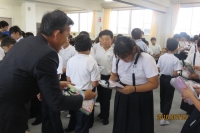 2016年7月11日 09時16分 7月17日(日)に開催される「第54回福島県吹奏楽コンクール相双支部大会」出場の合奏部の皆さんの壮行会を開きました。曲の紹介を頂き、演奏を聴きました。