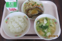 さて、16日の日本型食事の給食では、どうでしょう。みんな、よく噛んで食べていますねー。かぶとじゃがいも、にんじん、かぶの葉、油揚げなどの入った具だくさんみそ汁はとっても体にいいですね。