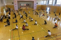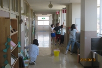18日(土)、午前8時から親子での校内美化作業(窓ふき、トイレ清掃)を行い、引き続き校内レクを実施しました。