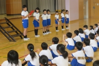 20日(月)の全校集会において、平成28年度の「プール開き」を行いました。各学年代表の「めあて」の発表がありました。「息つぎができるようにしたい。」「25㍍泳げるようにとしたい。」など、めあてを考えていました。体育主任からは、「朝食をきちんと食べることが大切です。」と話がありました。