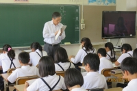 15日(水)食育授業を1年生で実施しました。「なんでもたべる」「すききらいしない」「よくかんで」を確認しました。鹿島中の村上栄養士さんに指導いただきました。1年生では、やさいのすききらいが少し見られるそうです。