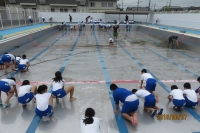 2016年6月13日 11時07分 6月7日(火)に実施したプール清掃から一週間。プールは満水となり、塩素消毒などの機械が順調に茶道しています。水質検査の結果がでたら、子どもたちが楽しみにしているプール使用が始まります。教職員の心肺蘇生法・AED講習も終え、安全な活用を進めてます。