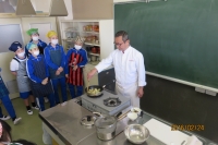 今日は、「新じゃがのガーリックグリル」の作り方、ポイントを教えていただきながら、「なぜ料理人になったのか」「おいしいものを作るためのチャレンジ精神」などのお話もいただき、中学校へ進学する子どもたちへ語りかけていただきました。