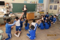 昨日の雪、雨、風の天気とは変わって、太陽もでてきてとてもいい天気になりました。3年生では、総合の時間にじぇぃみー先生と(sad,hungry,fine,sleepy,angry)などの言葉を用いたじゃんけんやハンカチ落としなどのアクティビティーをしながら英語のべんきょうをしました。