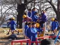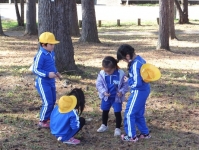 1日、天気が悪くて延期していた公園探検に出かけたよ。学校にはない遊具がたくさんあったよ。松ポックリや木の実もあったよ。みんなでたくさん見つけたよ。
