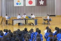 13日に開催されるアンサンブル・コンテスト出場の2チームの壮行会を開き演奏を聴きました。管楽五重奏と打楽器五重奏です。それぞれの曲のよさをうまく表現できていました。大会でも力を発揮してください。全校生で応援しています。