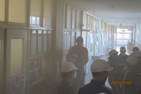 2時間目に避難訓練を実施しました。学校東側住宅火災が発生したとの想定で、全校生が体育館へ避難しました。避難時間は、最短1分少々から3分というところでした。話し声なく、機敏に移動できていたようです。もちろん、ハンカチを口にあて煙などへの対策もバッチリでした。