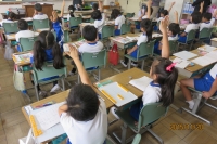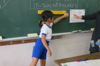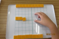 本時ではブロックを使い、既習事項と比較しながら計算の仕方を考えました。手を挙げて発表する学習習慣も身についてきているようでした。