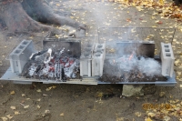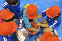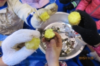 1・2年生がサツマイモに新聞紙、ホイルで包んで簡易かまどで焼き芋を作りました。あいにくの雨でしたが、待っている間は、体育館で体を動かし、鬼ごっこをしました。鬼にタッチされたら、エネルギーがなくなり、スローに歩きます。そして、先生のところまで行ってエネルギー補給をします。復活です。