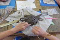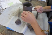 5年生の図工の題材に「焼き物」があります。焼き物の作品にするのは、難しいところですが、今年度は「ひがし学習センター陶芸教室」の皆さんのご協力を得、チャレンジしてみました。6グループにそれぞれ先生が付いて下さり、創造力を生かした作品づくりが展開されました。先生方も子どもたちの発想に感心しておりました。
