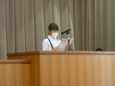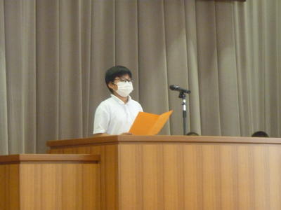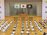 59日間の1学期も今日が最後。4校時目に体育館で終業式を行いました。まず、校長から夏休み守ってほしいこと2つを約束しました。その後、各学年の代表者から「1学期の反省と夏休みのめあて」を発表してもらいました。全校でできたことはとてもうれしかったです。終業式終了後は、生徒指導の先生から夏休みの決まりについての指導をしていただきました。