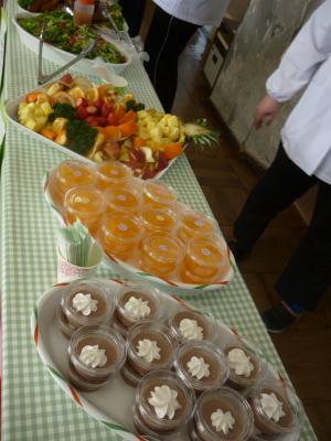 フルーツ(いちご パイナップル りんご オレンジ) 手作りフルーツゼリーとココアプリン スープ