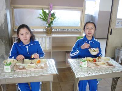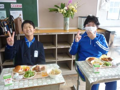昨日行われました『卒業お楽しみ給食』の食事の様子を掲載いたします。子供たちの満面の笑みをご覧ください。