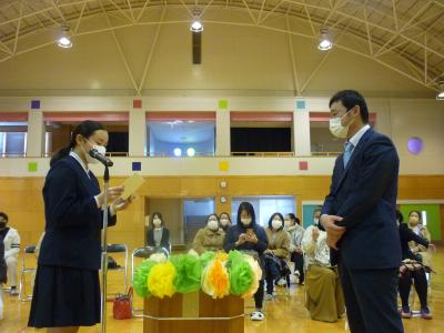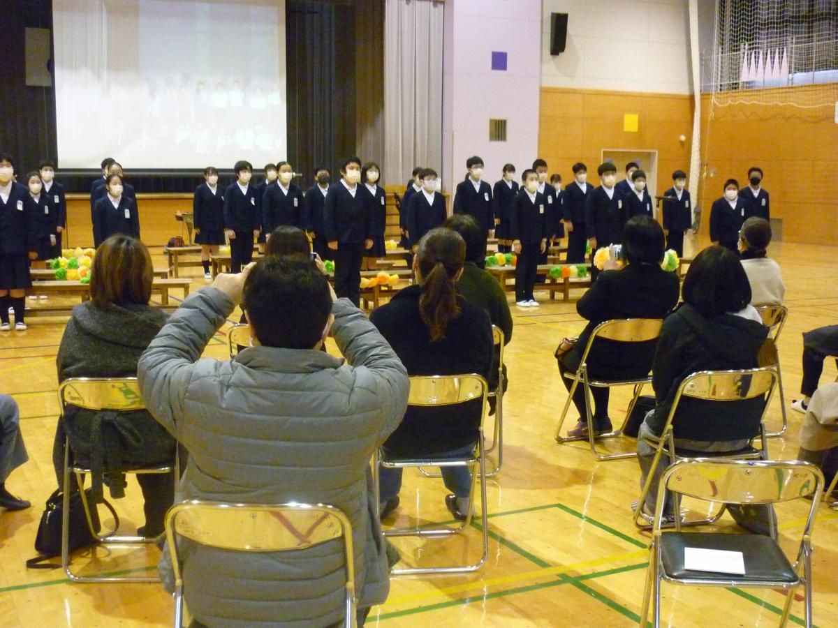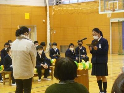 2021年3月3日 15時17分本日、卒業を迎えるにあたり、6年生だけが「授業参観」を行いました。児童と保護者が体育館に集まり、13時30分小学校最後の授業参観がスタートしました。はじめにこれまでの6年間を振り返る写真が大きなスクーリーンに映し出され、小学校生活を振り返りました。「あんなに小さかった子供たちが・・・」「こんな思い出もあったね。」と児童は児童なりに、保護者は保護者の立場でこれまでのことを思いでしていました。