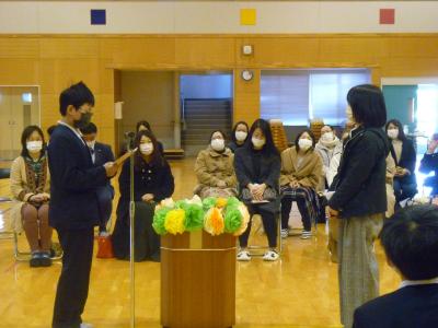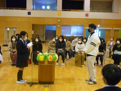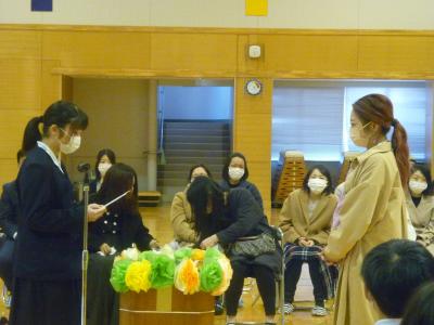 次に、児童一人一人から直接家族の人に手紙を読み、プレゼントを渡しました。保護者の方々は、子供たちが読む手紙に涙を流し、また、子供たちも今までの思いを伝えることができたことへの涙を流していました。子供たちの中には、これまで一度も言えずにいたことを伝えることができ、素敵な笑みを見せていました。