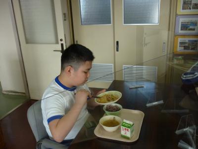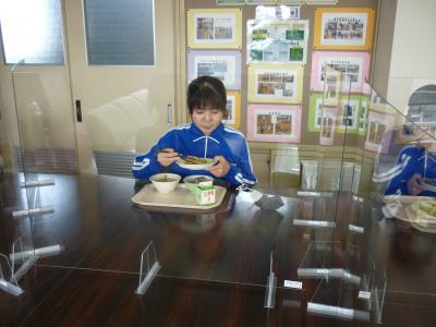 今日から、卒業生が校長室に来て、一緒に給食を食べることにしました。もちろん、コロナ感染防止を行い実施しています。人数は6~7名、十分間隔を開け、左右と前にパーティションを立て、会話をするときはマスクをして食べています。子供たちは、小学校の思い出や中学校での部活、今不安に思っていることなどを話していました。今週1週間、楽しい思い出になるようにしたいですね。