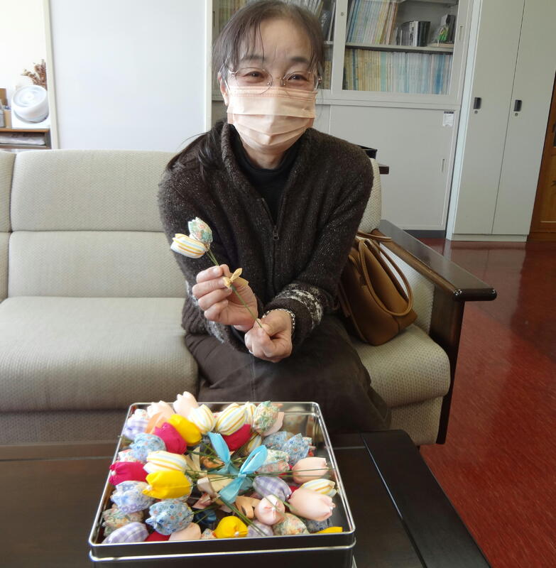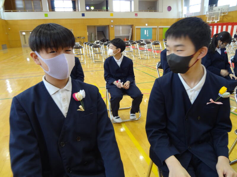 2024年3月12日 12時40分本校の学校評議員である杉内様から、6年生に手作りのお花をいただきました。