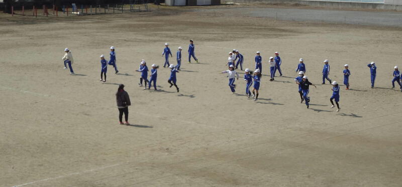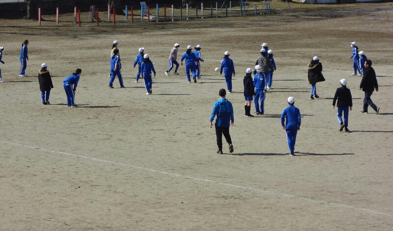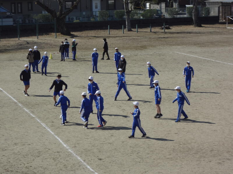 校庭では、56年生が一緒に体育でサッカーを行っていました。