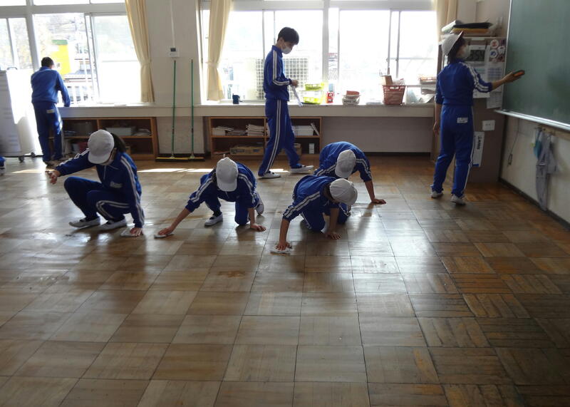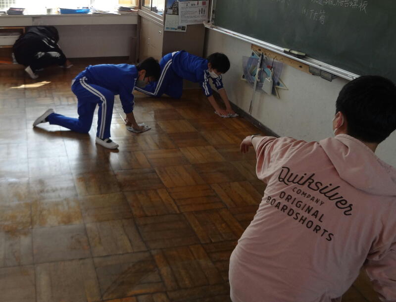 今日は、全校生で美化活動を行いました。1年間お世話になった校舎をきれいにする大掃除です。