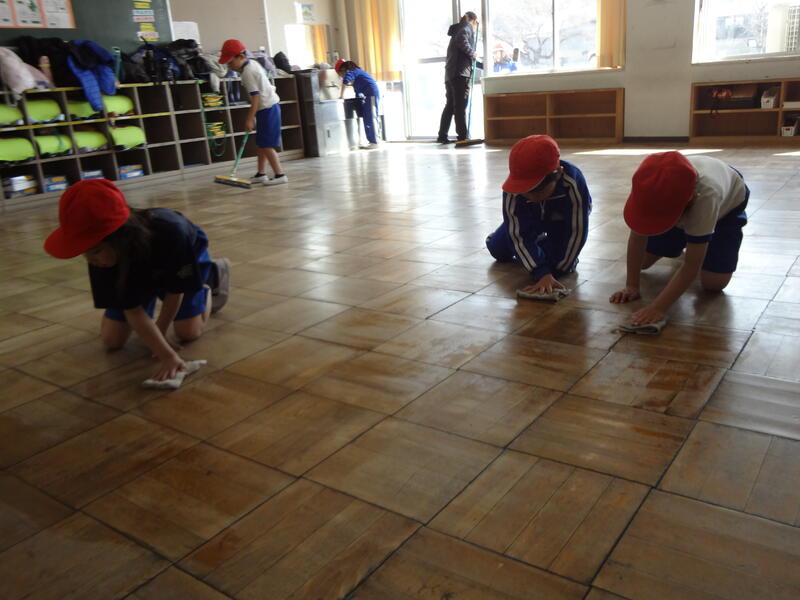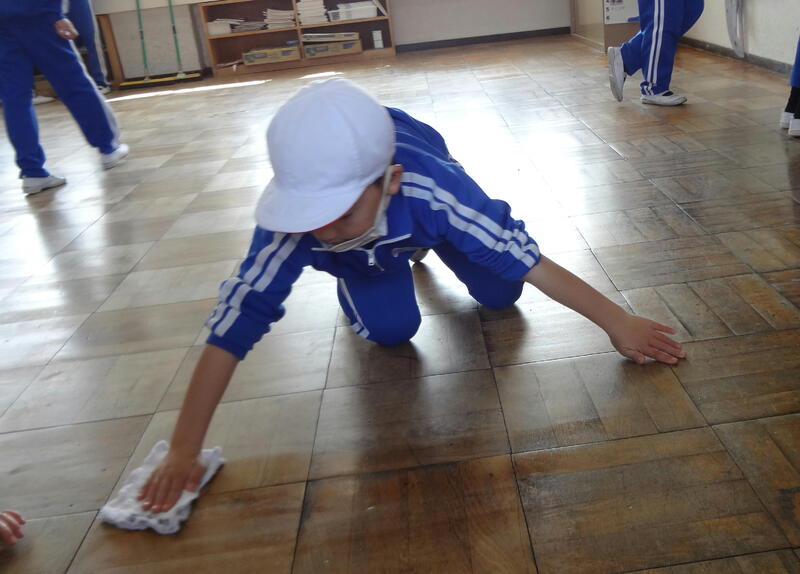 ひばりっ子のぞうきんがけは本当にすばらしい!すきまなく丁寧に拭き上げていきます。