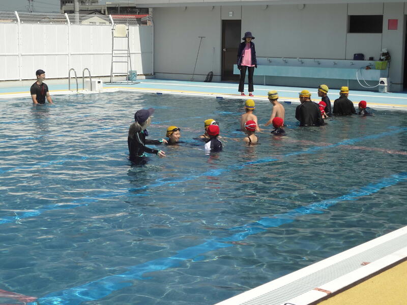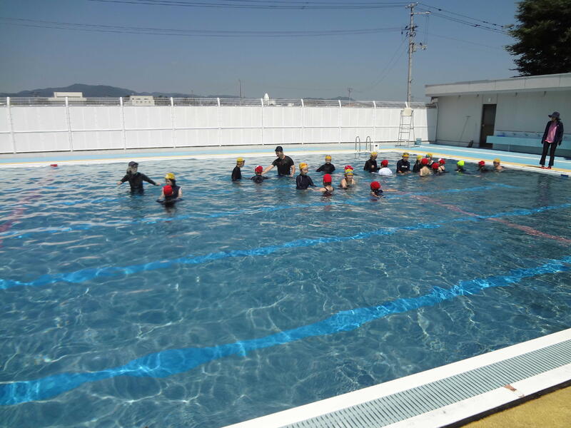 小学校のプールは深さもあり、ちょっとドキドキ。