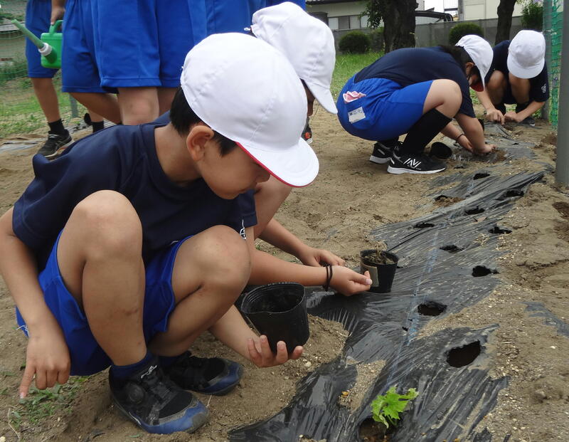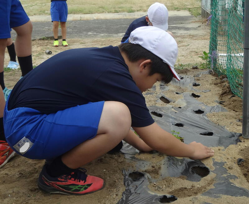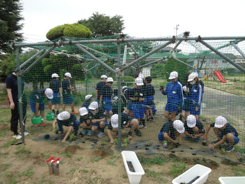 へちまの移植(4年) 2024年6月21日 10時36分 4年生は、理科で「ヘチマの観察」を学習しています。今日は、一人一人が種から育ててきた苗を畑に移植する活動を行いました。これから気温も高くなり、ヘチマがどんどん成長していくようすを観察していくのが楽しみですね。