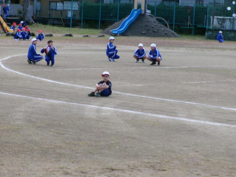 抜き打ちですから、子どもたちには内緒です。2時間目の休み時間に地震速報を流すと、それぞれの場所に居た一人一人が机に下に入ったり、その場で頭を手で守ってしゃがんだりとすばやく行動していました。