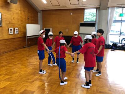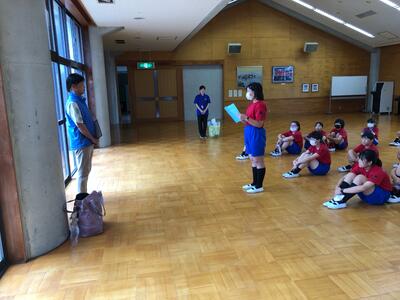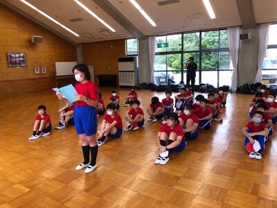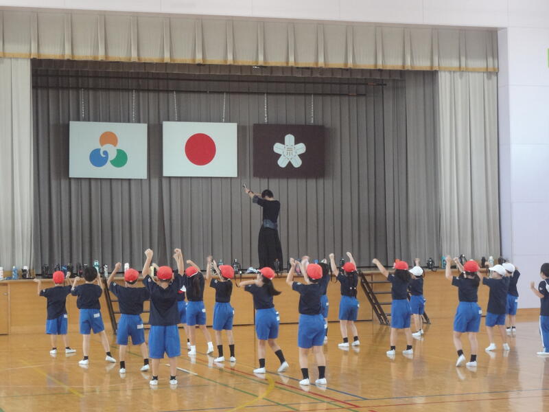 2年生は、体育館で先生の動きに合わせて練習に取り組んでいました。