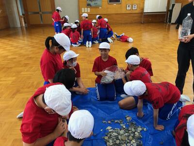 「海浜フレンドパーク」では、班の友達と協力しながら、楽しくゲームに取り組みました。