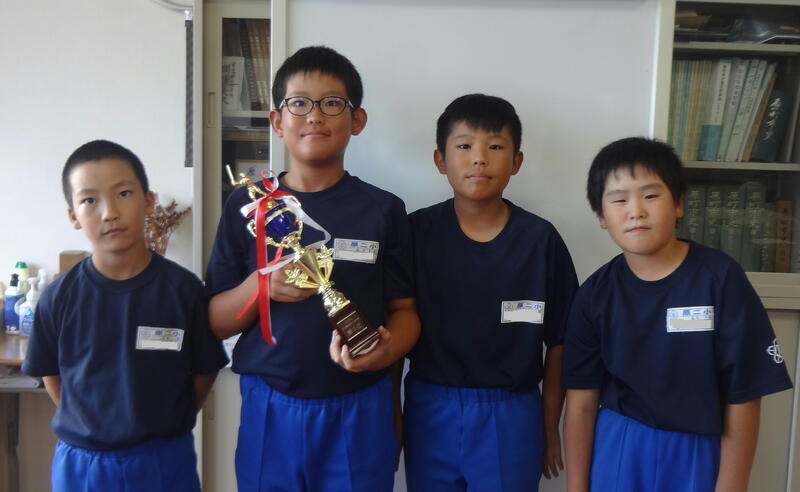 一日校長先生のお話の後、スポーツ少年団野球チームの表彰を行いました。