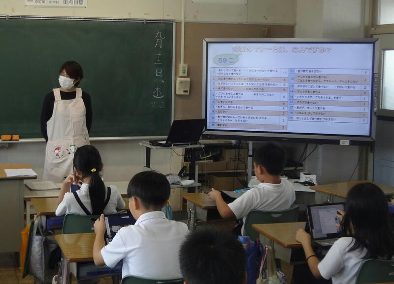 このマナーは自分のため?いっしょに食べている人のため?様々な視点から考える授業でした。