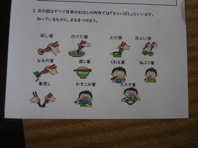 おはしの作法についても学びました。3年生でもけっこう知識として知っていたようです。