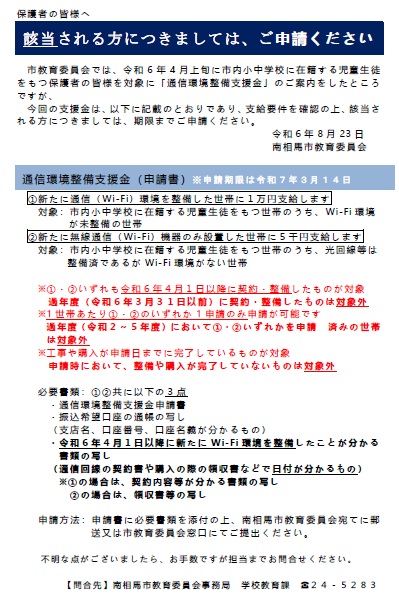該当される方は期限(令和7年3月14日)までにご申請ください。