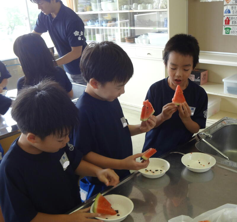 ある子は、1組と2組のスイカの味の違いを見事にコメントしながら食べていました。