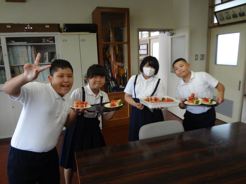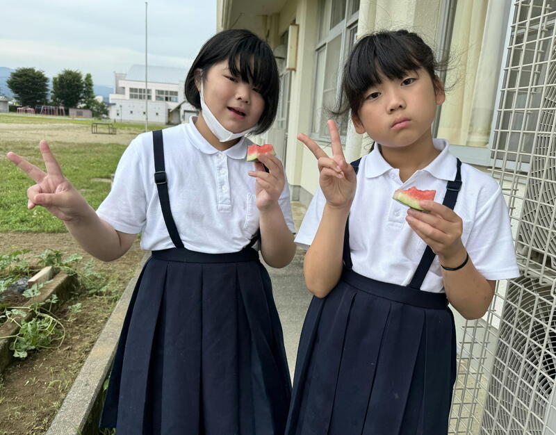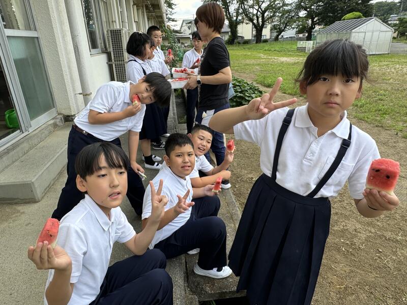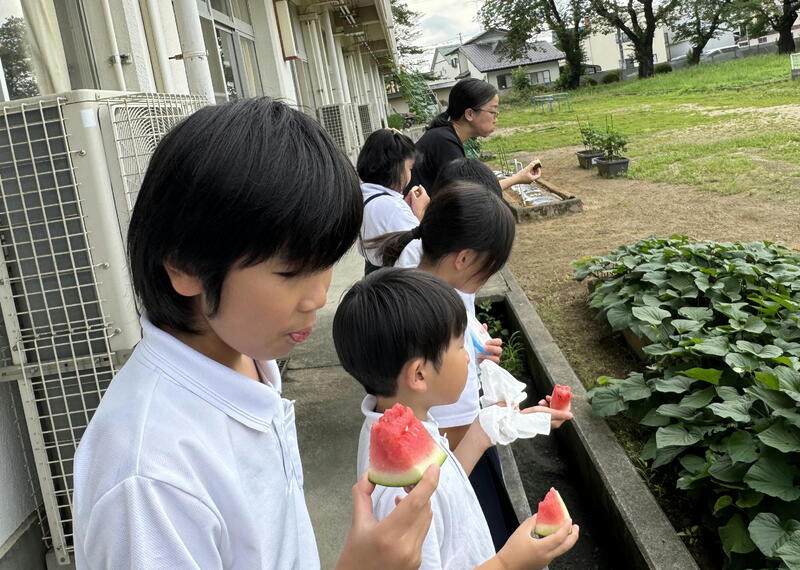 甘くておいしいスイカに子どもたちの笑顔が広がっていました。