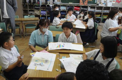 6年生が1年生をお迎えに行き、各方部にわかれて話し合いがもたれました。