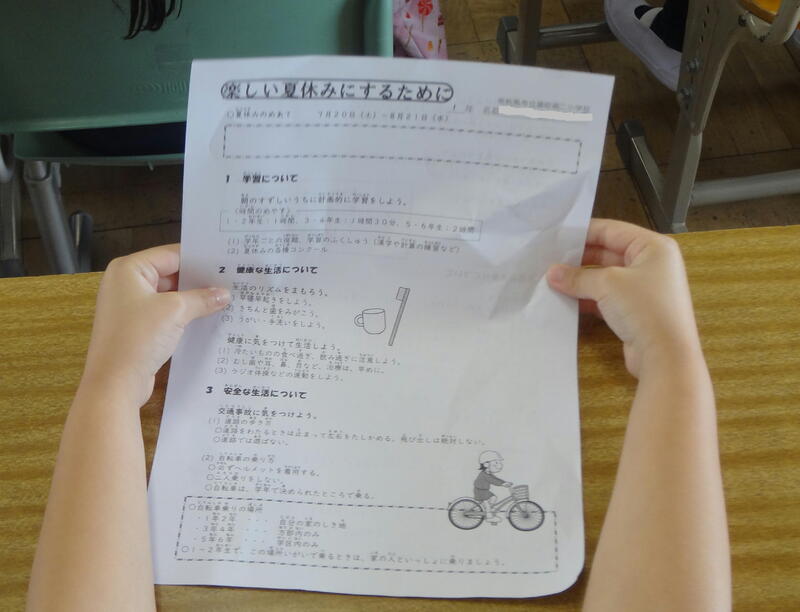 学習、健康、交通安全について、そして近所に危険な箇所はないかなど、夏休みを楽しく安全に過ごすために担当の先生と確認しました。